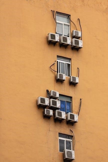 Sensors in air conditioners play a crucial role in maintaining optimal performance and efficiency. The air conditioner parts name PDF details various sensors, such as temperature, humidity, and pressure sensors, which monitor environmental conditions. These sensors ensure the AC adjusts settings accurately, providing consistent comfort. The PDF guide lists part numbers and descriptions for sensors, aiding in identification and replacement. Regular maintenance, like cleaning or recalibrating sensors, is essential to prevent malfunctions. Faulty sensors can lead to inefficient operation, so the guide emphasizes their importance. By understanding sensor functions, users can troubleshoot issues and ensure their AC runs smoothly. This section highlights how sensors contribute to overall system efficiency and user satisfaction. Proper care and replacement of sensors are vital for long-term performance.
